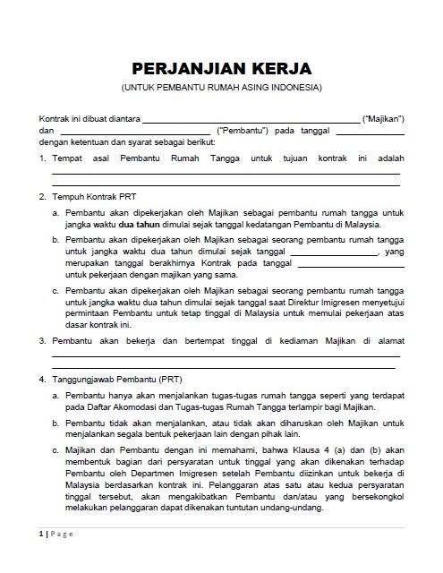 Kontrak Kerja Pembantu Rumah Indonesia Di Malaysia