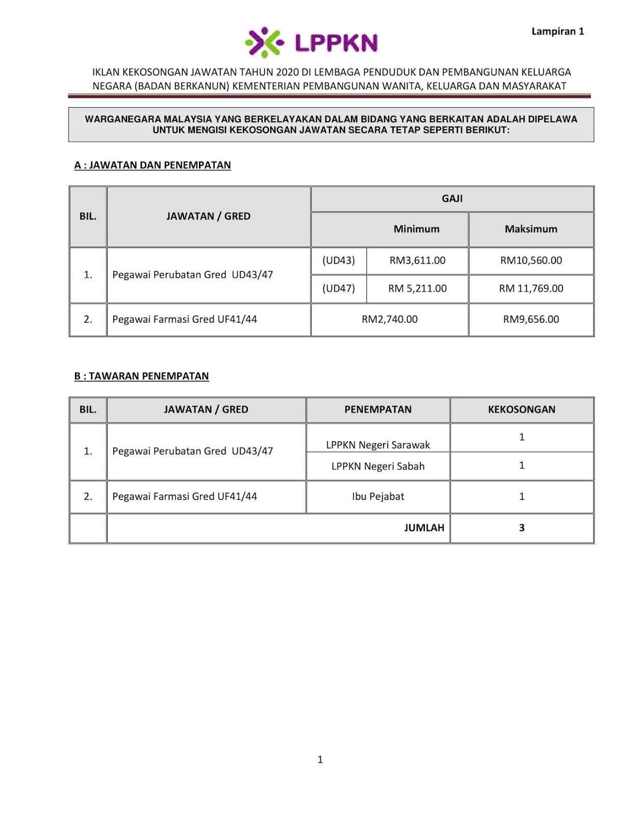 Kerja Kosong Lembaga Penduduk Dan Pembangunan Keluarga Negara Lppkn Surat Kabor Jawatan Kosong